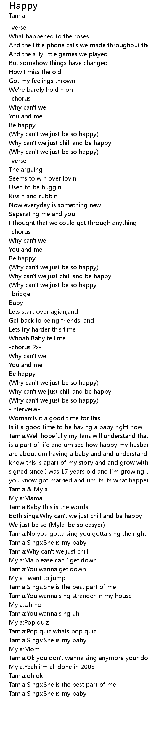 Tamia:No you gotta sing you gotta sing the right words baby you know |
