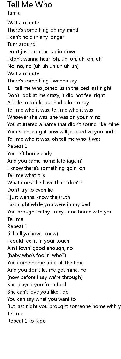 | Tell me who it was, tell me who it was | |