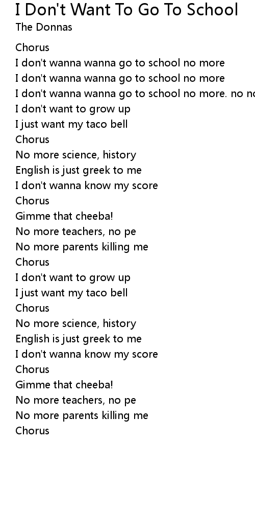 I don't wanna wanna go to school no more. no no |