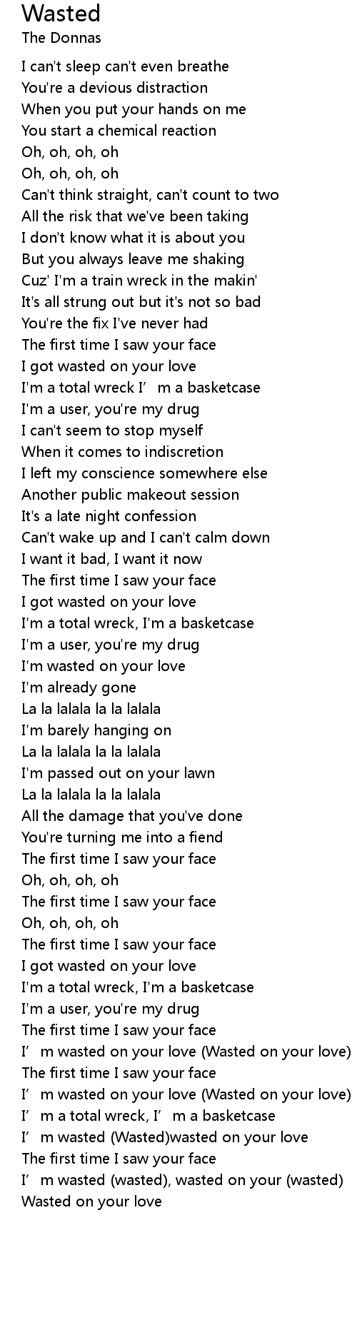 | I’m wasted (wasted), wasted on your (wasted) | |