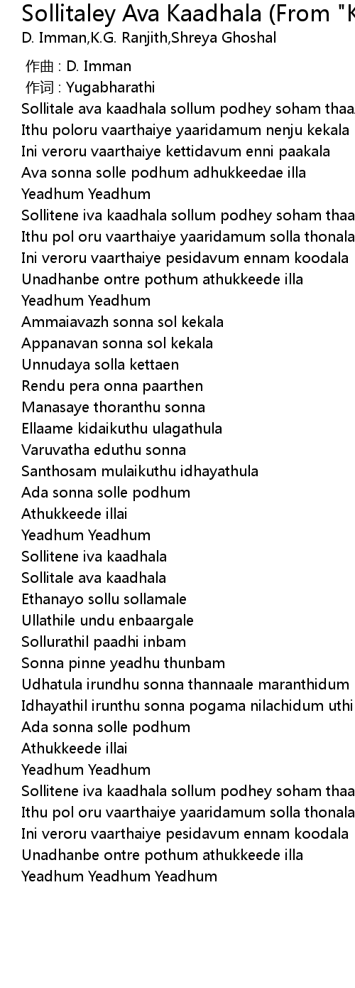 | [00:00.343] | 作词 : Yugabharathi |