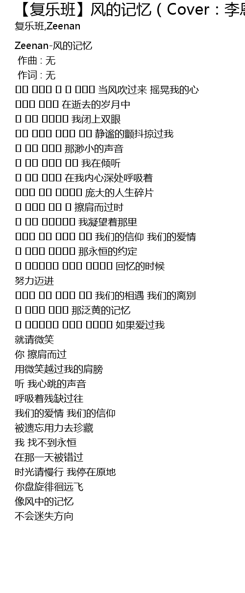 | Zeenan-风的记忆 | |