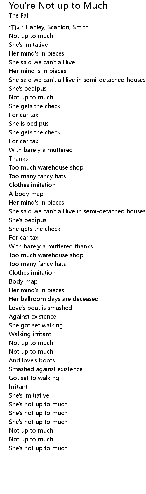 | Song | You're Not up to Much |