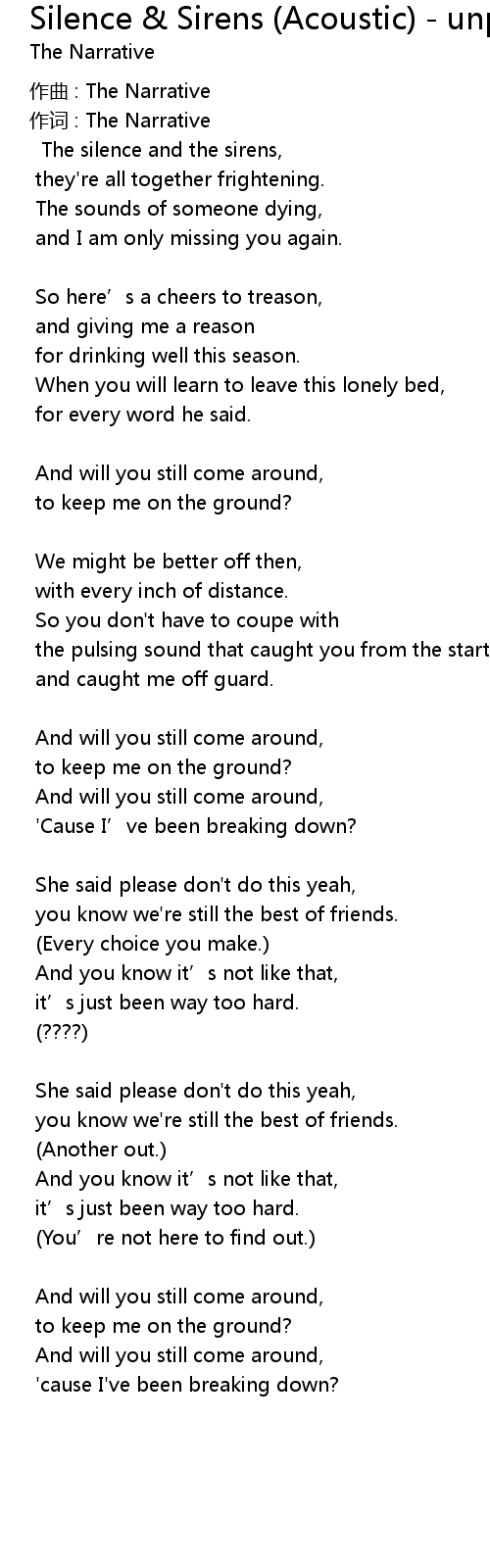 | Song | Silence & Sirens (Acoustic) - unplug |