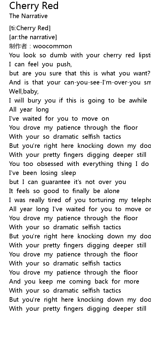 | [00:10.90] | You look so dumb with your cherry red lipstick on |