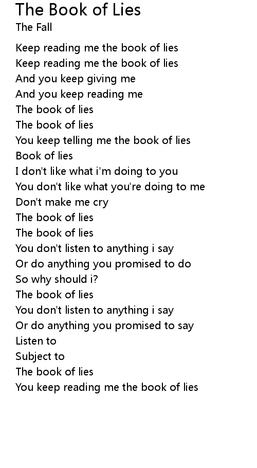 You keep telling me the book of lies |