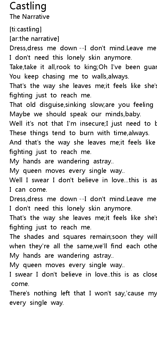 There's nothing left that I won't say,'cause my queen moves every single way. |