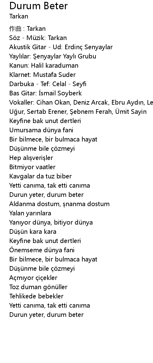 | Vokaller: Cihan Okan, Deniz Arcak, Ebru Ayd n, Levent Yü ksel, zkan | |