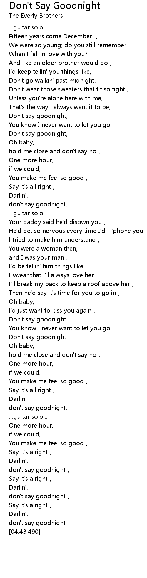 | [04:29.490] | don' t say goodnight, |