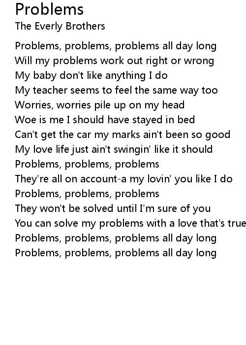 Problems, problems, problems all day long |