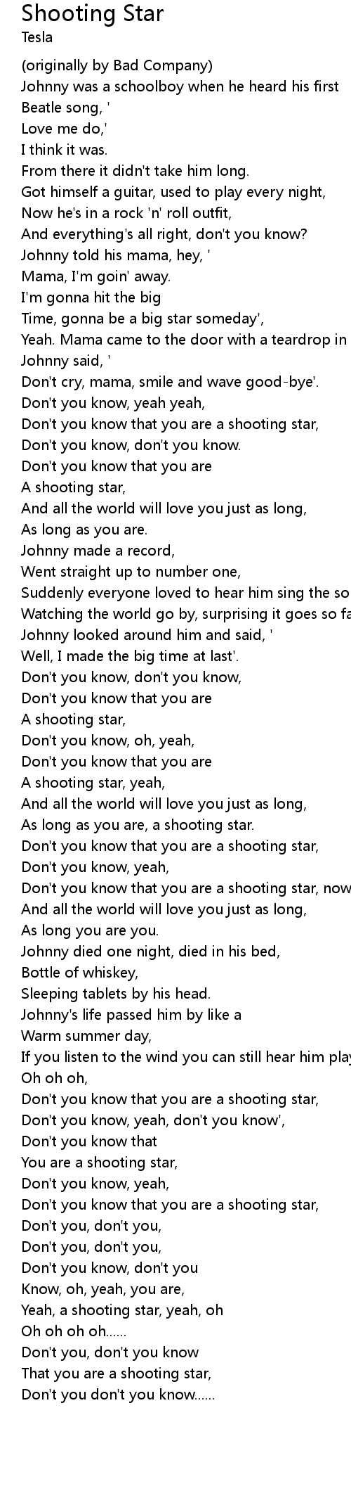 Don't you know that you are a shooting star, |