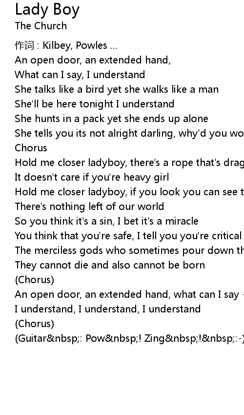| Hold me closer ladyboy, there' s a rope that' s dragging you out of this world | |