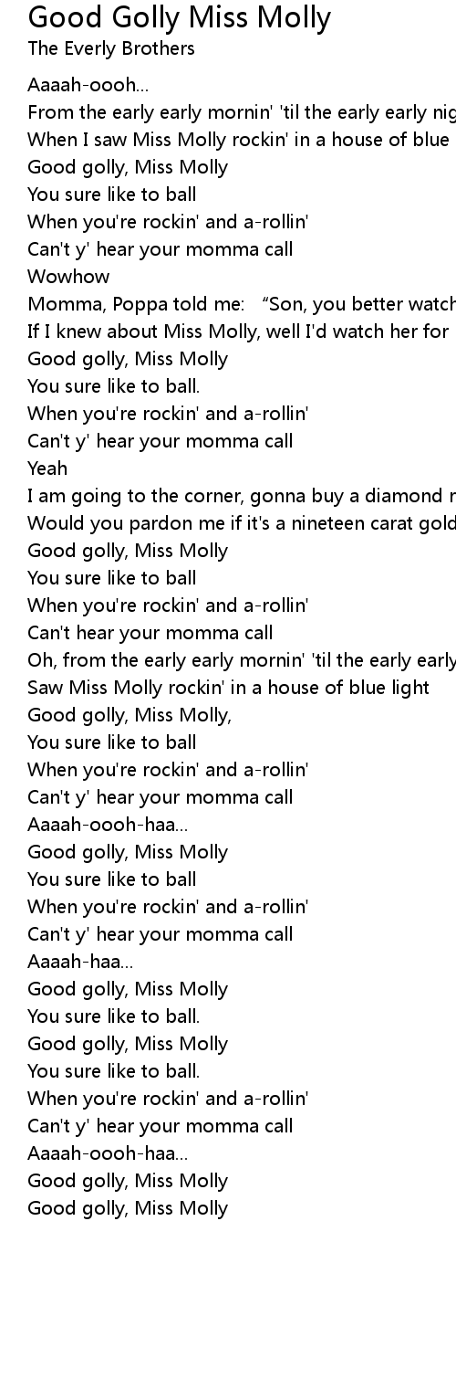 | If I knew about Miss Molly, well I'd watch her for myself | |