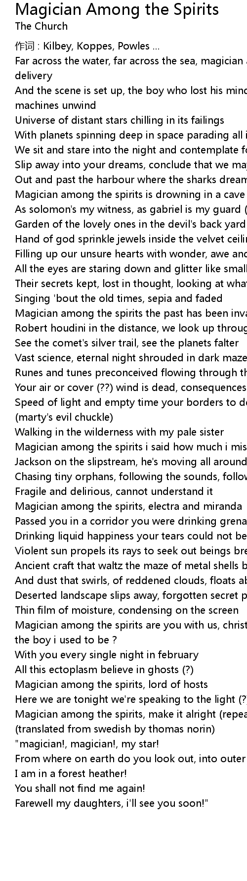 | Far across the water, far across the sea, magician among the spirits, the next delivery | |