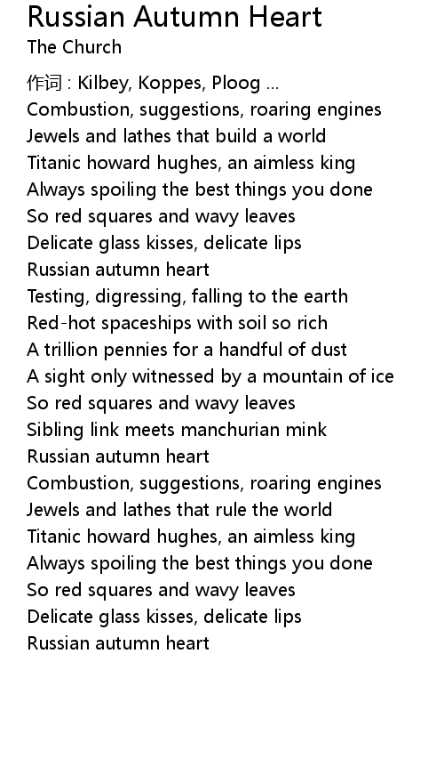 | 作词 : Kilbey, Koppes, Ploog ... | |