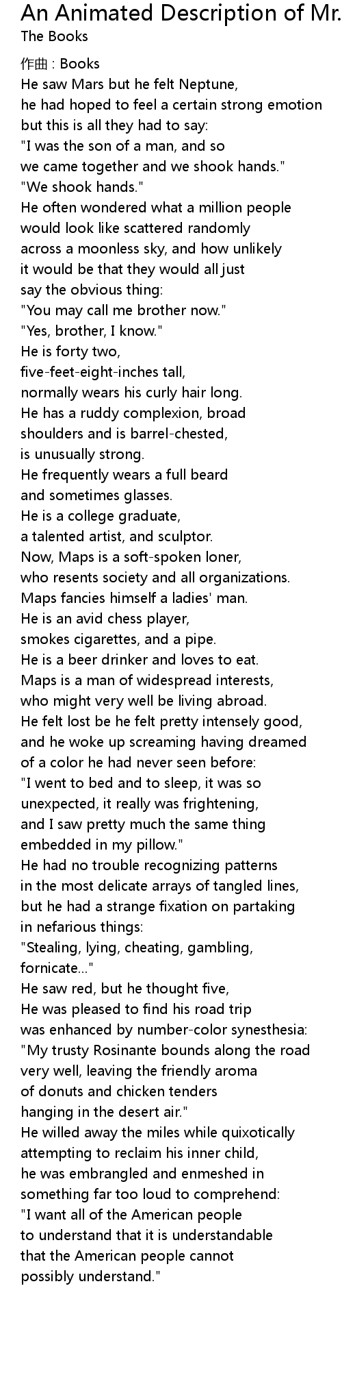 | Song | An Animated Description of Mr. Maps |