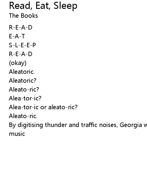 | Song | Read, Eat, Sleep |