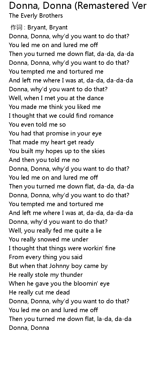| [00:06.40] | Donna, Donna, why'd you want to do that? |