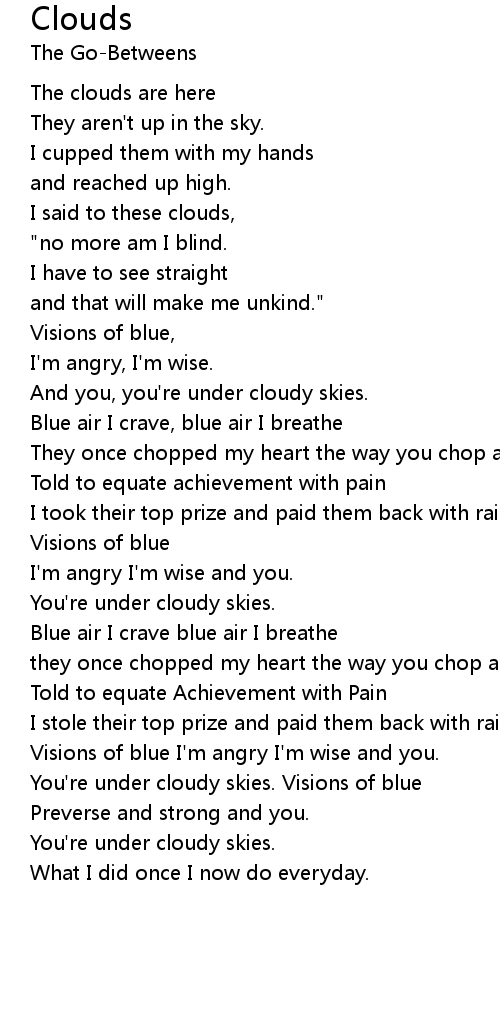 You're under cloudy skies. Visions of blue |