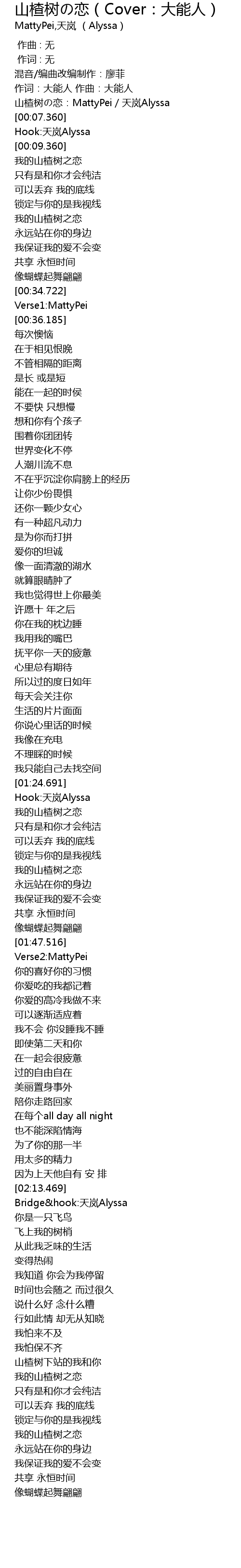 | [00:04.360] | 山楂树の恋:MattyPei/天岚Alyssa |