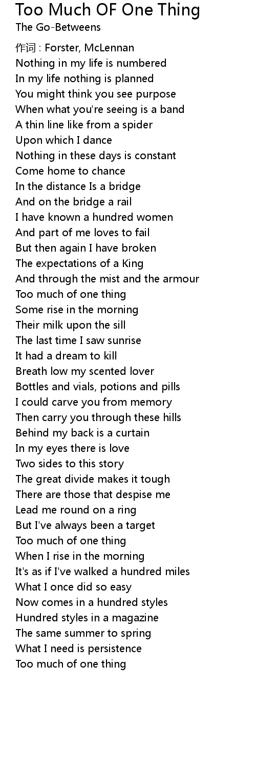 | Song | Too Much OF One Thing |