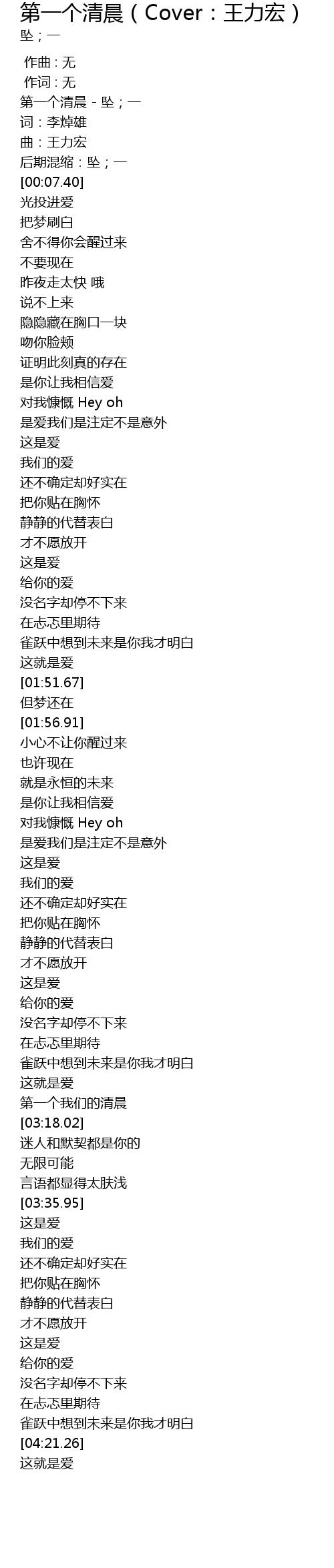 | [00:00.10] | 第一个清晨 - 坠;一 |