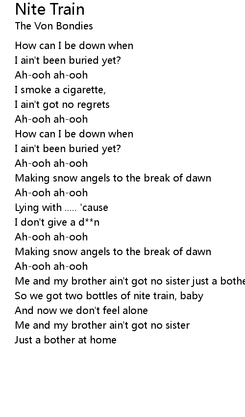 So we got two bottles of nite train, baby |