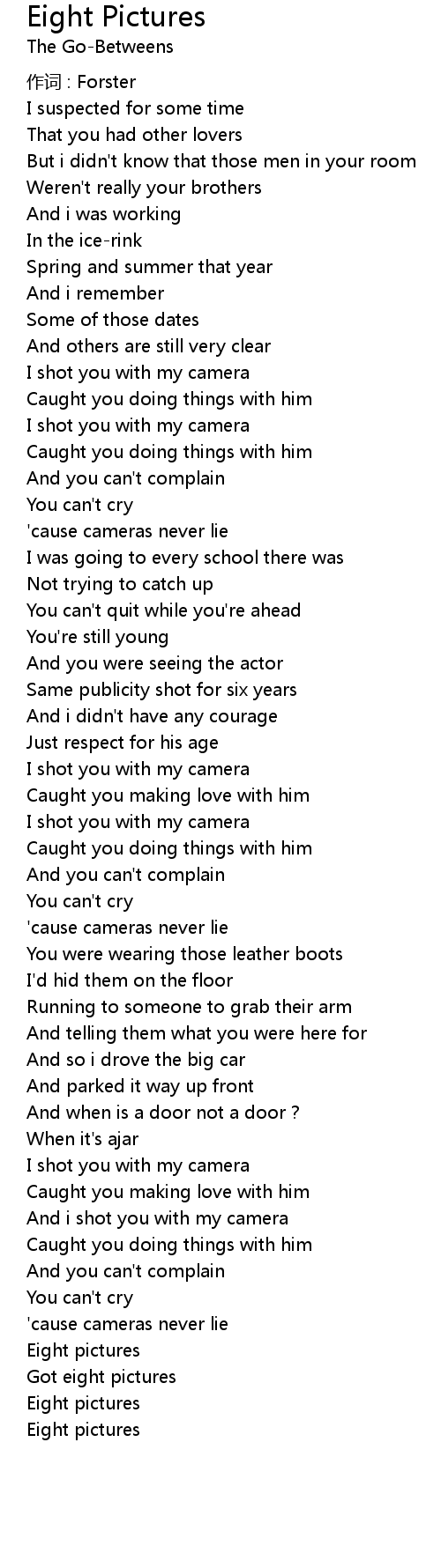 | 'cause cameras never lie | |