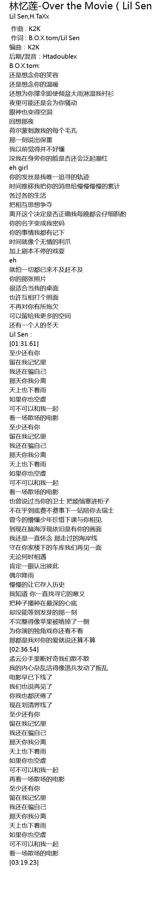 | [00:01.000] | 作词 : B.O.X.tom/Lil Sen |
