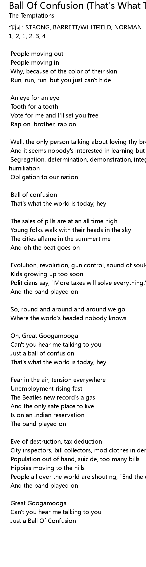 | Song | Ball Of Confusion (That's What The World Is Today) |