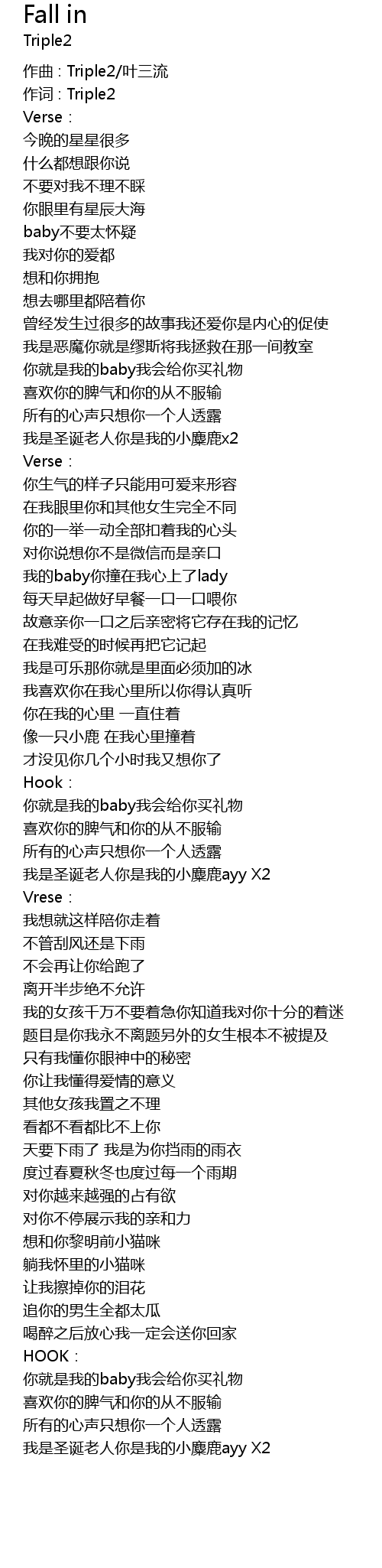 | 作词 : Triple2 | |