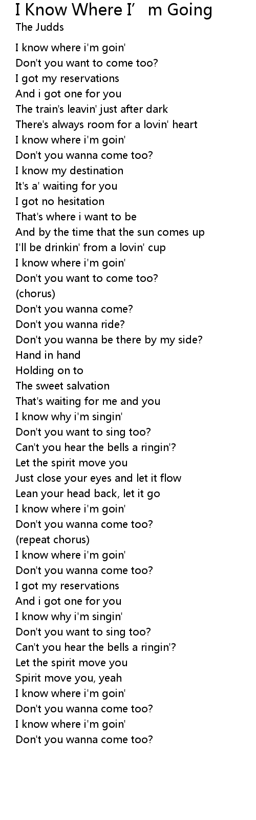 I Know Where I’m Going I Know Where I' m Going Lyrics