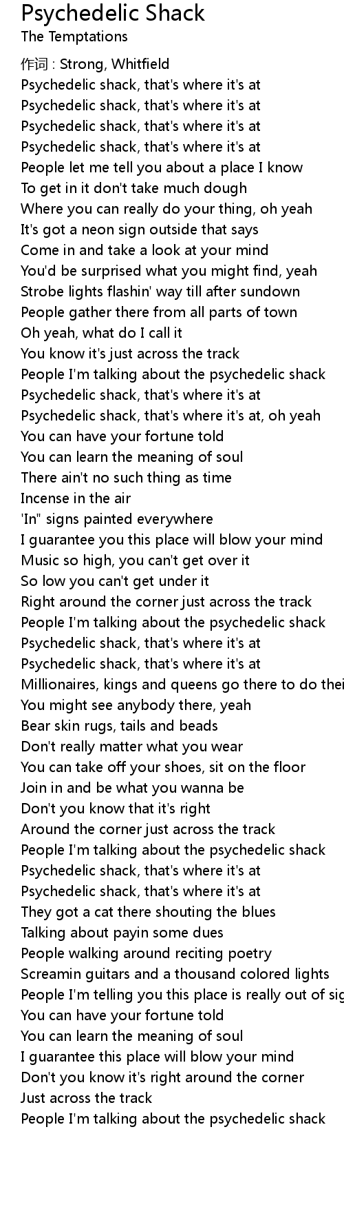 | Psychedelic shack, that' s where it' s at, oh yeah | |