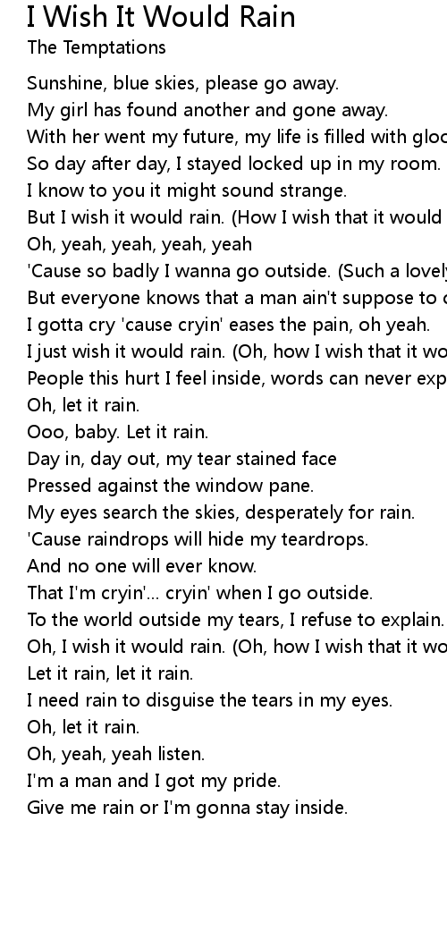 | [00:42.680] | But I wish it would rain. (How I wish that it would rain) |