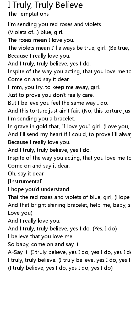 A-Say it. (I truly believe, yes I do, yes I do, yes I do)