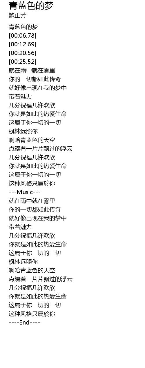 | [01:08.31] | 啊哈青蓝色的天空 |