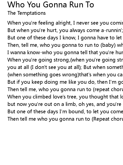 Then tell me, who you gonna run to (repeat chorus)Hmmm mm |