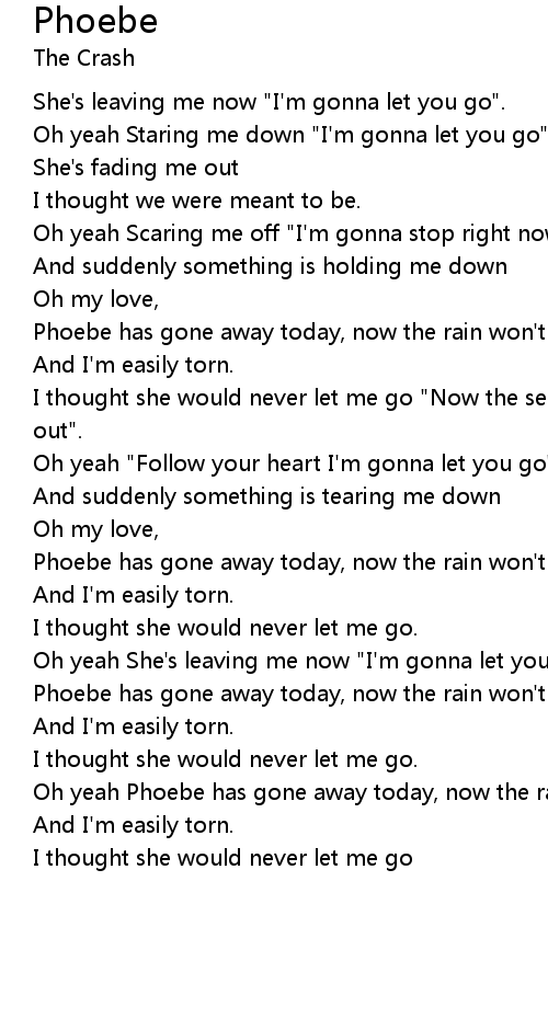 | Oh yeah Phoebe has gone away today, now the rain won't stop | |