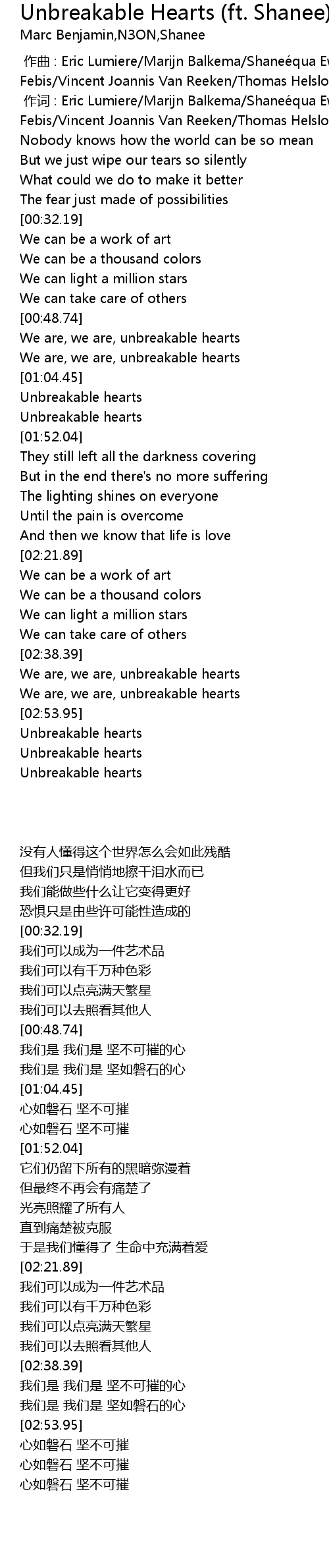 | [00:48.75] | We are, we are, unbreakable hearts |