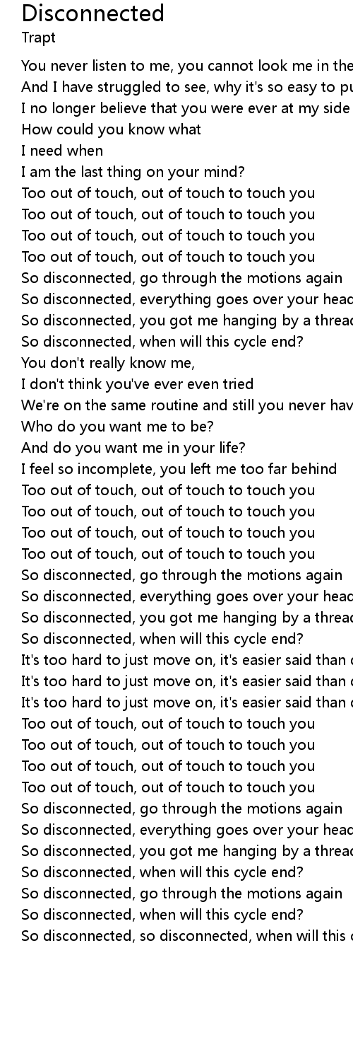 | So disconnected, so disconnected, when will this cycle end? |