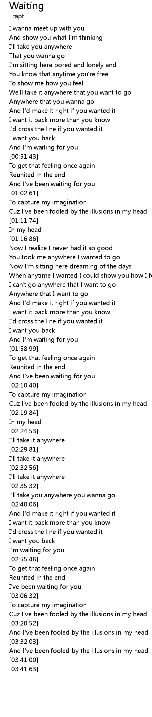 | [02:51.04] | I'm waiting for you |