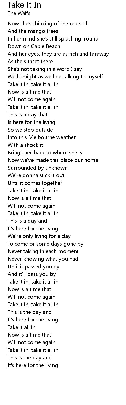 Take it in, take it all in |