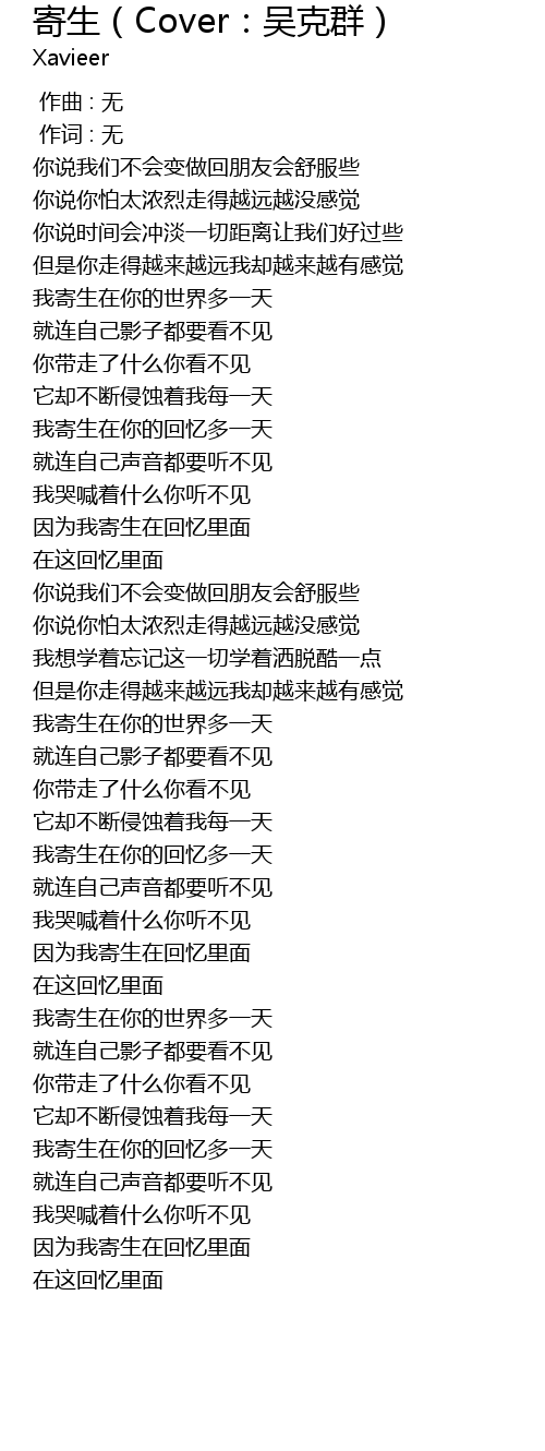 | [04:46.11] | 我寄生在你的回忆多一天 |