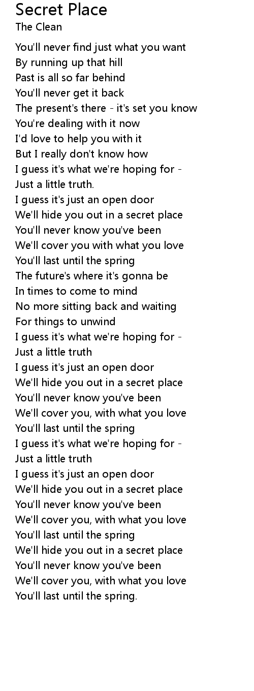 | We'll hide you out in a secret place | |
