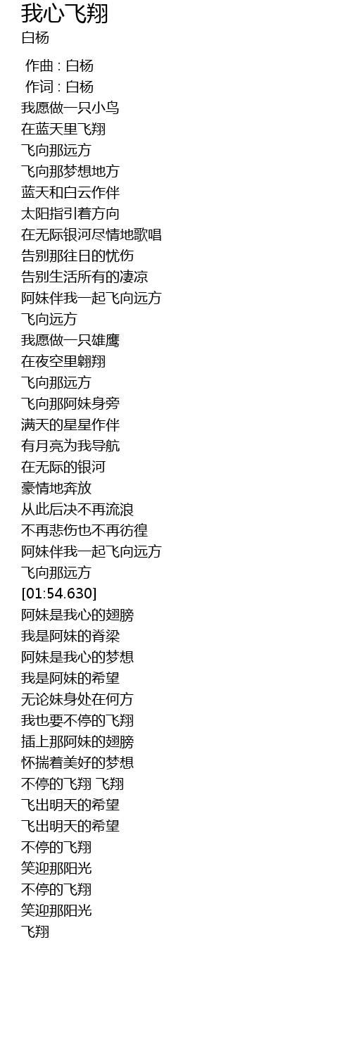 | [01:56.479] | 阿妹是我心的翅膀 |