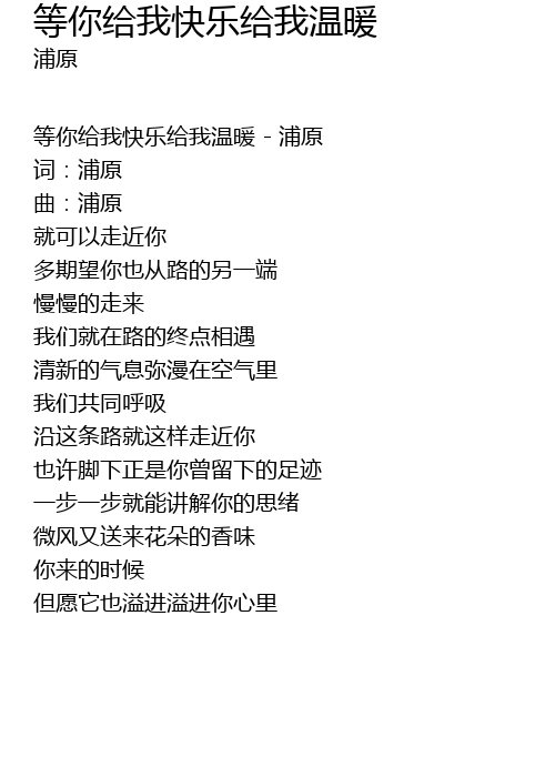 | děng nǐ gěi wǒ kuài lè gěi wǒ wēn nuǎn pǔ yuán | |