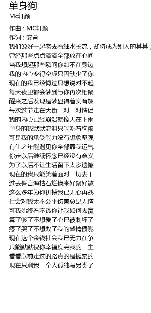 | dān shēn de wǒ mò mò liú lèi zhǐ néng chī zhe gǒu liáng | |