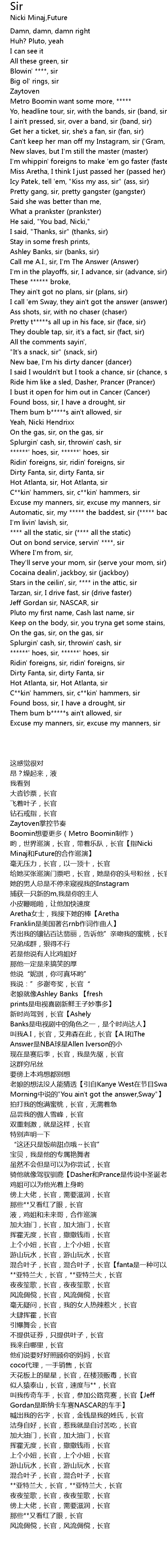 | [03:18.27] | Ridin' foreigns, sir, ridin' foreigns, sir |