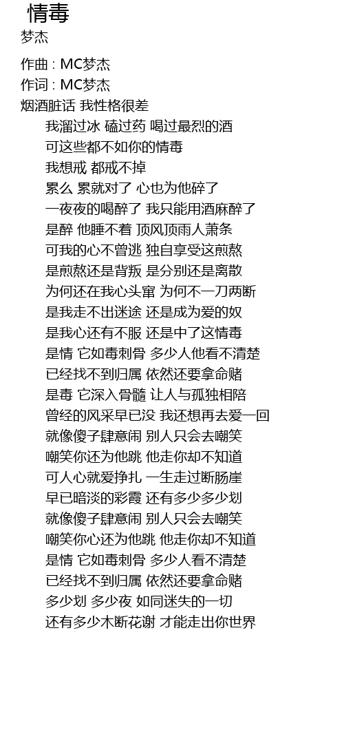 | 是情 它如毒刺骨 多少人他看不清楚 | |