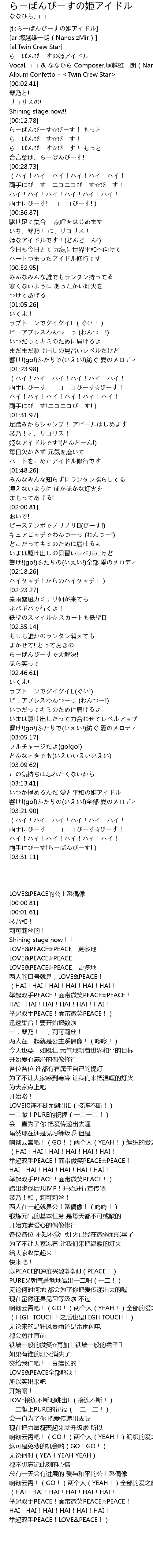| [00:00.01] | らーばんぴーすの姫アイドル |